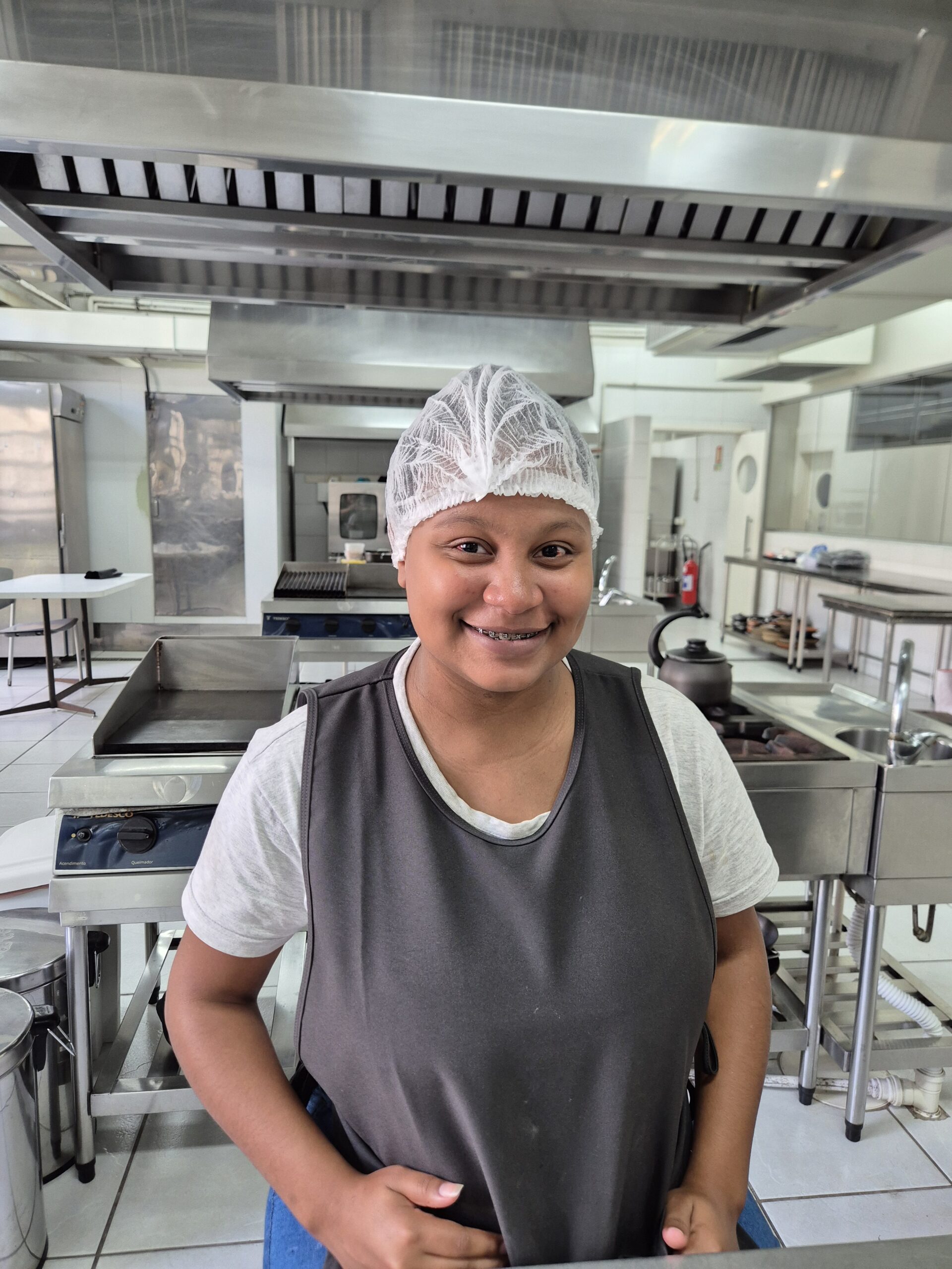 “Essa experiência está sendo bem incrível porque é a primeira vez que eu estou fazendo curso de culinária e eu estou gostando muito de estar fazendo, aprendendo coisas novas. Está sendo bem incrível mesmo, bem legal, porque eu gosto de cozinhar desde pequena”.